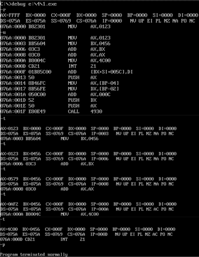 最后一条指令所得的值应该为1044CH,但是ax寄存器放不下,最高位的1不能保存