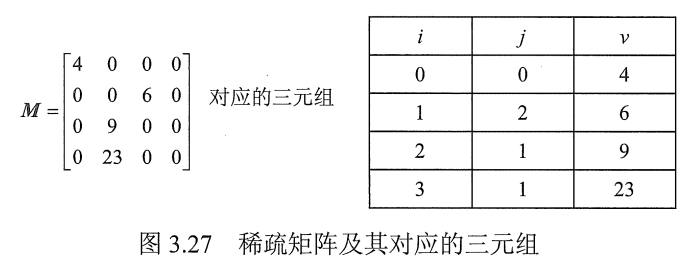 稀疏矩阵:非零元素远远少于矩阵元素的个数